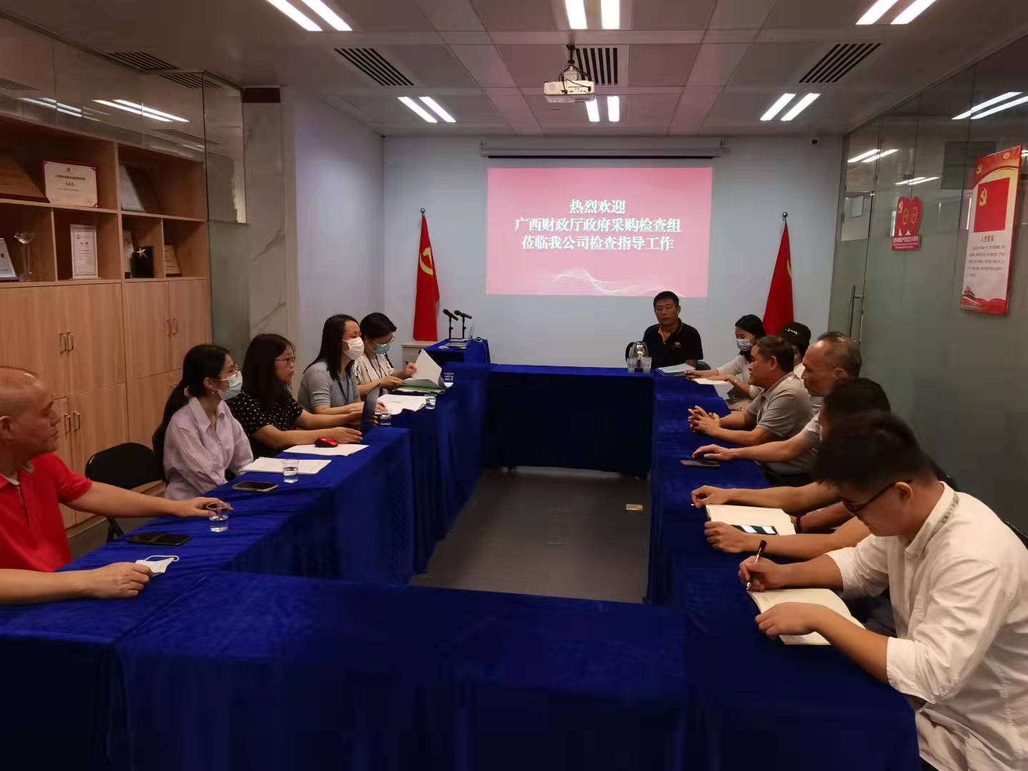 8月13日上午,廣西壯族自治區(qū)財(cái)政廳政府采購檢查組蒞臨我公司進(jìn)行年度檢查現(xiàn)場(chǎng)查驗(yàn)工作。我公司總經(jīng)理陳浩、副總經(jīng)理黃藝組織公司政府采購工作相關(guān)人員積極配合檢查組開展工作。