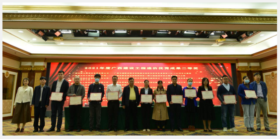 2021年度廣西建設(shè)工程造價(jià)優(yōu)秀成果獎(jiǎng)二等獎(jiǎng)獲獎(jiǎng)單位合影